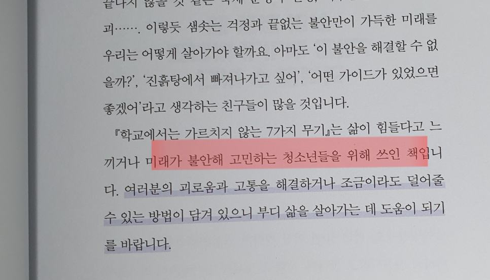 특히 우리나라는 청소년에게 오는 사춘기에 오는 특유의 미래에 대한 불안감과 다양한 심리적인 것을 너무 무시하는 경향이 있습니다. 그저 시험을 위한 과정만 밀어붙이는 것이 아닐까 생각합니다. 개인적으로 청소년기를 암울하게 보낸 경험이 있어서 그런지 지금의 청소년들은 더 제대로 된 조언을 해줄 수 있는 어른들이 많았으면 좋겠고 그런 어른이 되고자 하는 생각이 있습니다.