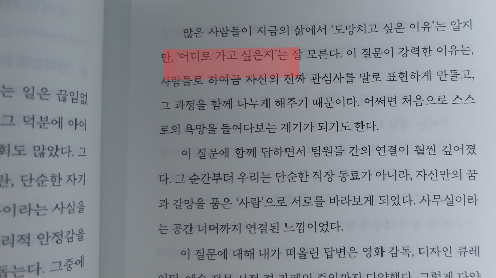 지금의 시대는 좋은 대학을 나와서 공채로 일을 하는 것이 아니라 다양한 삶과 일을 하면서 나만의 무언가를 가진 사람이 눈에 띄고 더 큰 무대로 갈 수 있는 시대라고 생각합니다. 또한 여기서도 남의 시선이나 평가를 의식하면 이미 생명을 다한 곳에서 빠져나오지 못하거나 새롭게 들어가는 오류를 범할 수 있습니다.