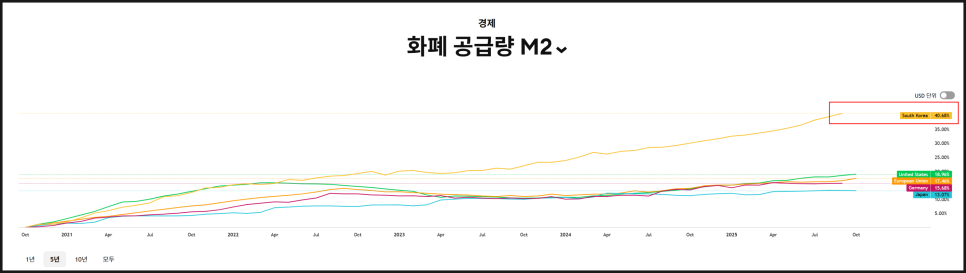 장기적인 보유와 투자를 위해서는 달러 표시 자산(달러화 보유, 미국 주식 투자)을 가지고 있는 것이 가장 현명한 방법이라고 생각합니다. 인플레이션을 극복하기 위해 투자를 하는데 오히려 인플레이션을 날려버리는 나라에 대한 투자는 나의 자산과 노후를 동시에 책임질 수 있는 수단이 됩니다.