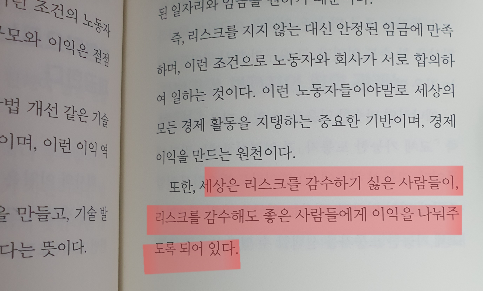 저자가 의미하는 것은 리스크를 감수하는 자본가가 안정된 임금을 받는 노동자보다 더 우위에 있는 것이 자본주의 사회라는 것이지만 투자라는 범위에서 한정 짓더라도 사람들은 이 상품이 안정적인지부터 먼저 보기 마련입니다.