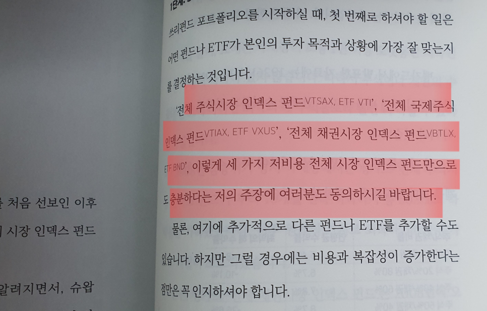 이 책은 단호하게 말합니다. 단 3가지 펀드만으로 전 세계 모든 주식과 채권 시장을 소유할 수 있다고 말이죠.